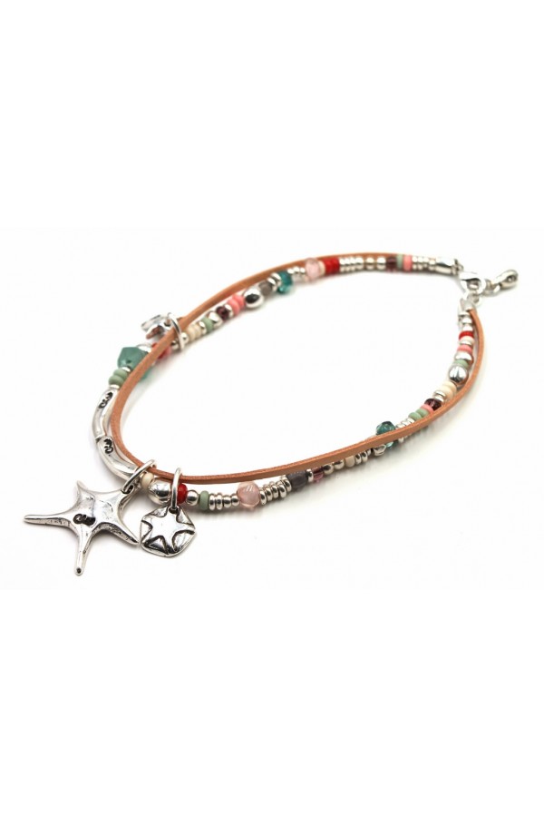 Zamak / Peltre baño plata 5µ / Perlas nácar / Cuero y piel nacionales / Resinas epoxi / Cristal checo