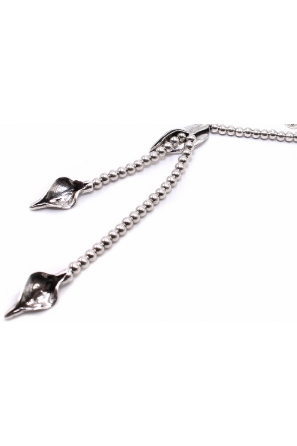Zamak / Peltre baño plata 5µ / Perlas nácar / Cuero y piel nacionales / Resinas epoxi / Cristal checo
