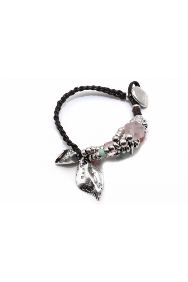 Zamak / Peltre baño plata 5µ / Perlas nácar / Cuero y piel nacionales / Resinas epoxi / Cristal checo
