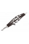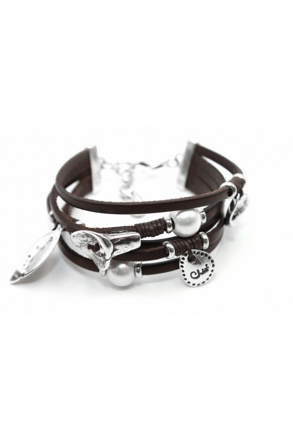 Zamak / Peltre baño plata 5µ / Perlas nácar / Cuero y piel nacionales / Resinas epoxi / Cristal checo
