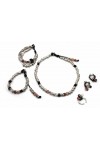 Zamak / Peltre baño plata 5µ / Perlas nácar / Cuero y piel nacionales / Resinas epoxi / Cristal checo