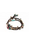 Pulsera de cuero natural. Chapado en oro 24 kilates.