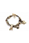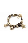 Pulsera de cuero natural. Chapado en oro 24 kilates.