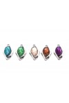 Zamak / Peltre baño plata 5µ / Perlas nácar / Cuero y piel nacionales / Resinas epoxi / Cristal checo