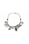 Zamak / Peltre baño plata 5µ / Perlas nácar / Cuero y piel nacionales / Resinas epoxi / Cristal checo