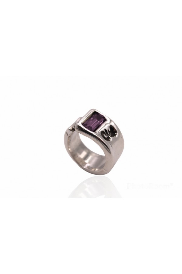 Anillo ajustable con engarce de cristal rhinestone.  Baño de plata hipoalergénica de 5 micras.