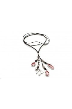 Zamak / Peltre baño plata 5µ / Perlas nácar / Cuero y piel nacionales / Resinas epoxi / Cristal checo