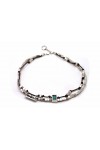Zamak / Peltre baño plata 5µ / Perlas nácar / Cuero y piel nacionales / Resinas epoxi / Cristal checo