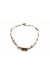 Zamak / Peltre baño plata 5µ / Perlas nácar / Cuero y piel nacionales / Resinas epoxi / Cristal checo