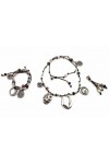 Zamak / Peltre baño plata 5µ / Perlas nácar / Cuero y piel nacionales / Resinas epoxi / Cristal checo