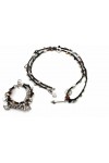 Zamak / Peltre baño plata 5µ / Perlas nácar / Cuero y piel nacionales / Resinas epoxi / Cristal checo