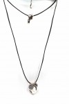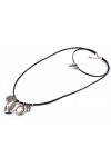 Collar cuero plano, corto a 40, largo a 84 cms. Baño plata 5 mµ.