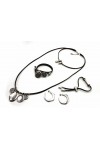 Zamak / Peltre baño plata 5µ / Perlas nácar / Cuero y piel nacionales / Resinas epoxi / Cristal checo