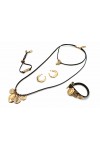 Collar cuero plano, corto a 40, largo a 84 cms. Chapado en oro 24 kilates.