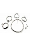 Zamak / Peltre baño plata 5µ / Perlas nácar / Cuero y piel nacionales / Resinas epoxi / Cristal checo