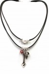 Zamak / Peltre baño plata 5µ / Perlas nácar / Cuero y piel nacionales / Resinas epoxi / Cristal checo