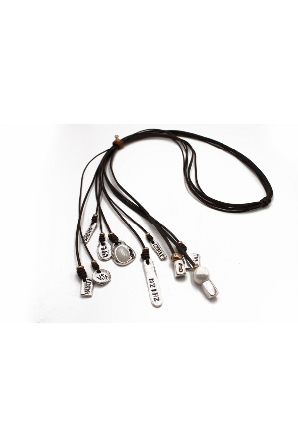 Zamak / Peltre baño plata 5µ / Perlas nácar / Cuero y piel nacionales / Resinas epoxi / Cristal checo