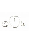 Zamak / Peltre baño plata 5µ / Perlas nácar / Cuero y piel nacionales / Resinas epoxi / Cristal checo