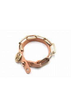 Pulsera de cuero natural. Chapado en oro 24 kilates.