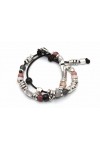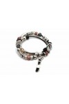 Pulsera doble vuelta de cuero natural, fornituras y cristal. Baño plata 5 mµ.