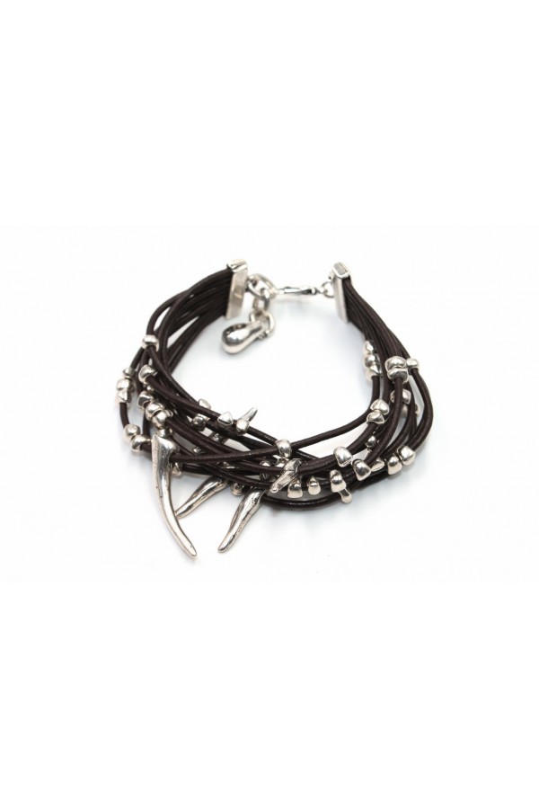 Pulsera UNISEX de cuero natural. Baño plata 5 mµ.