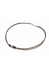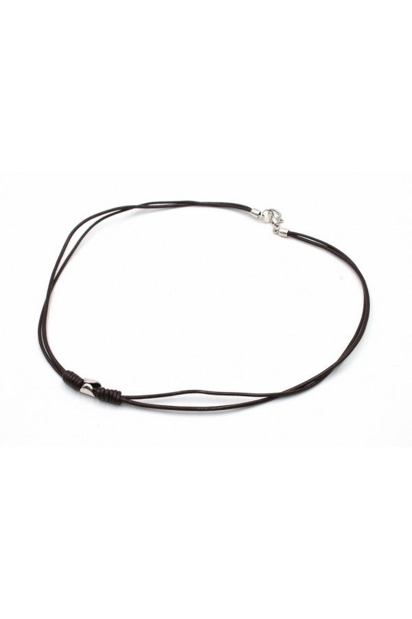 Colgante 50 cms. UNISEX de cuero natural. Baño plata 5 mµ.