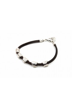 Pulsera UNISEX de cuero natural. Baño plata 5 mµ.