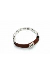 Pulsera de cuero natural. Baño plata 5 mµ.