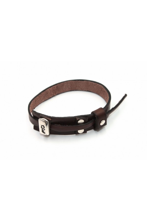 Pulsera UNISEX de cuero natural. Baño plata 5 mµ.